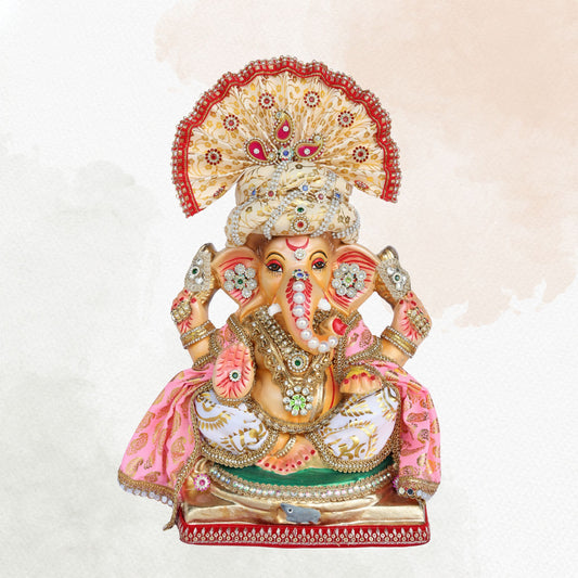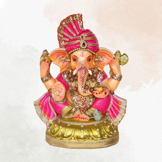 23 Inch β Royal Pink Ganesha Idol | Shadu Mitti Eco-Friendly Murti with Golden Base & Crown Pagdi